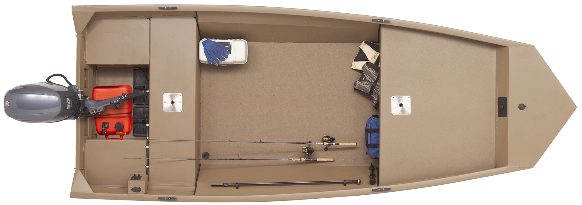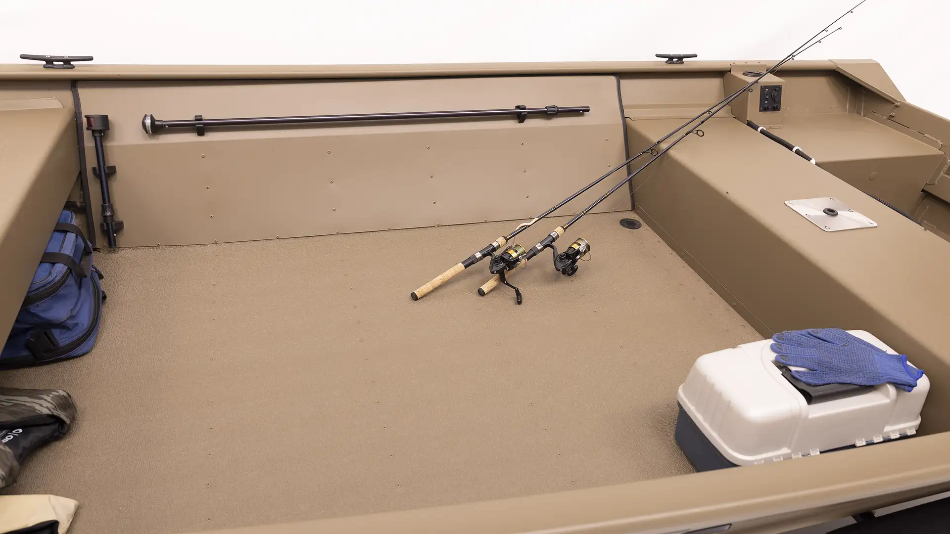 Dependable workhorse, flat-bottom jon boat built to handle rugged conditions while giving you the space and stability you need.
