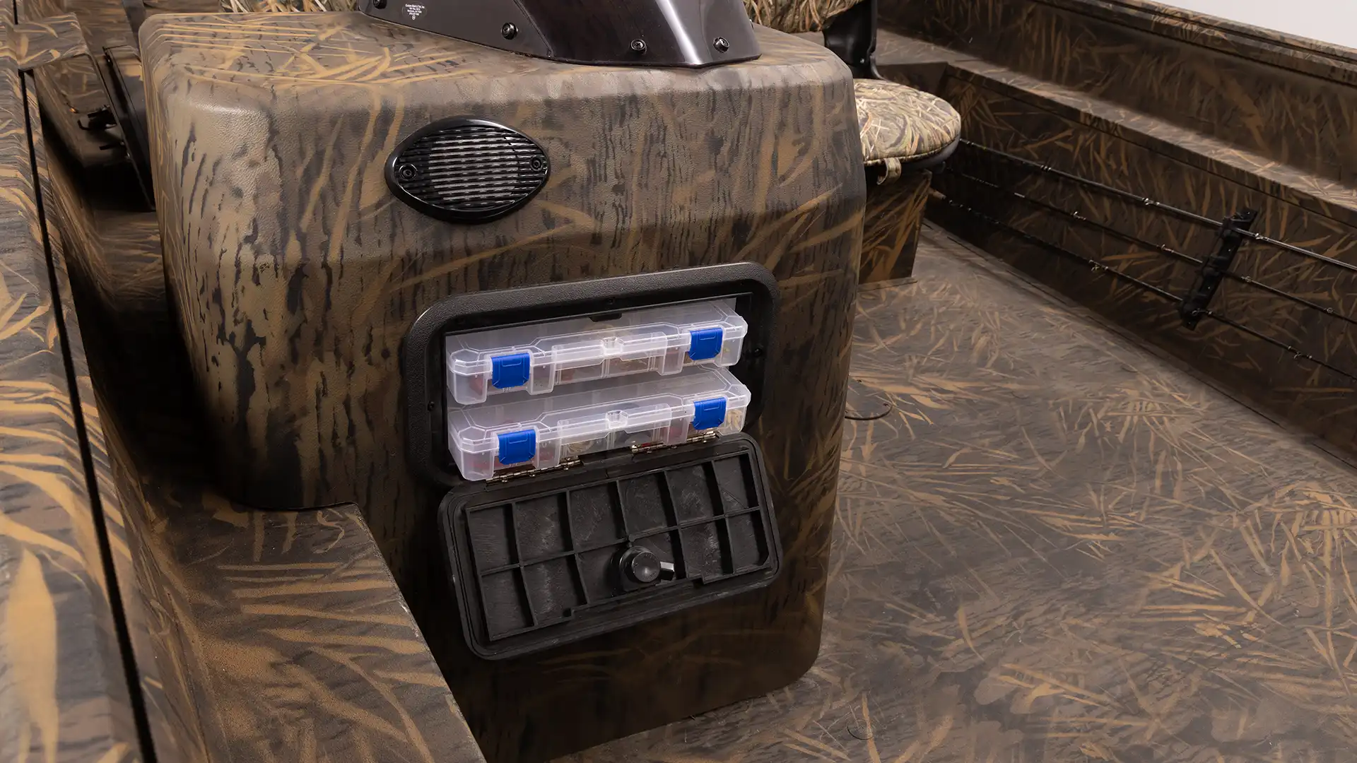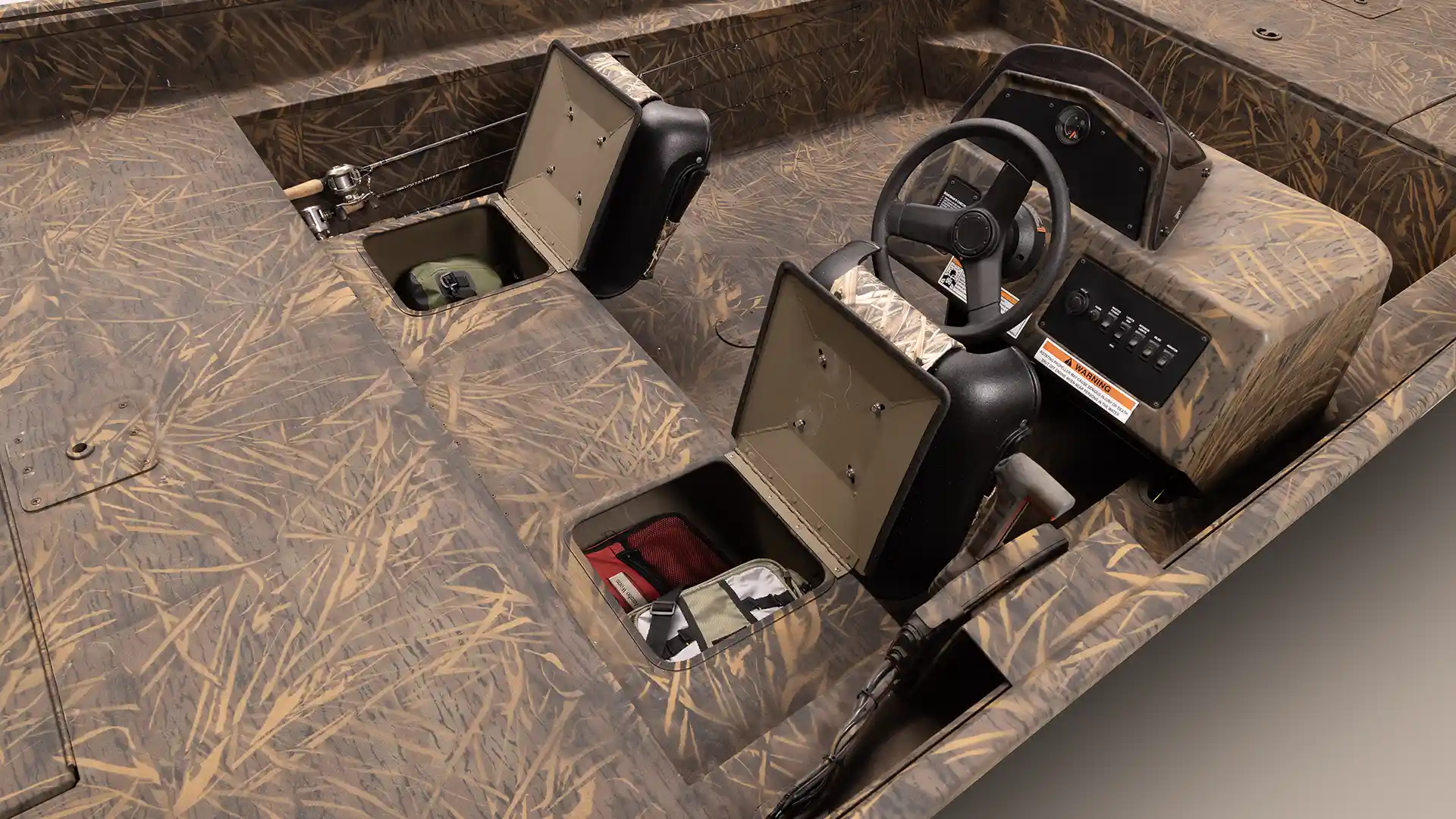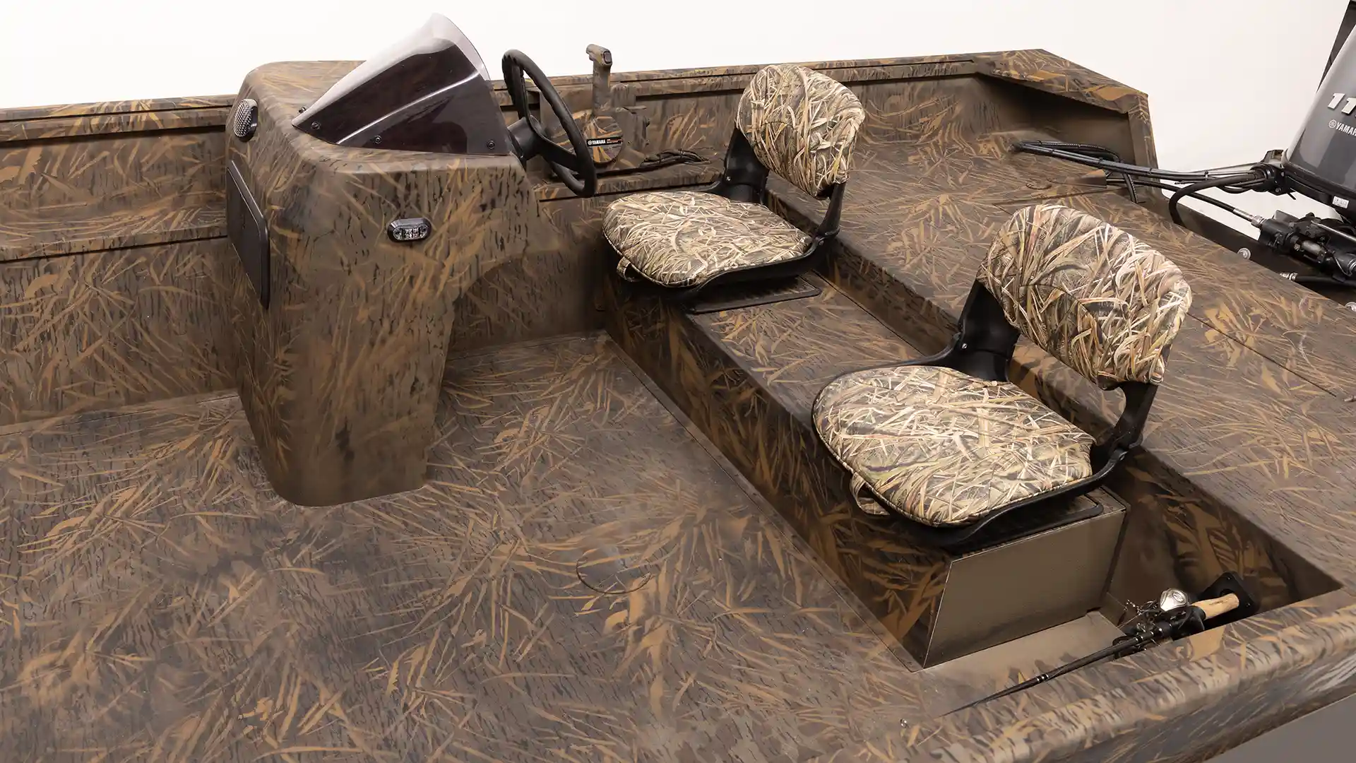 Under-seat storage, side rod holders, bow storage and livewell with a side console gives the angler just what they need.