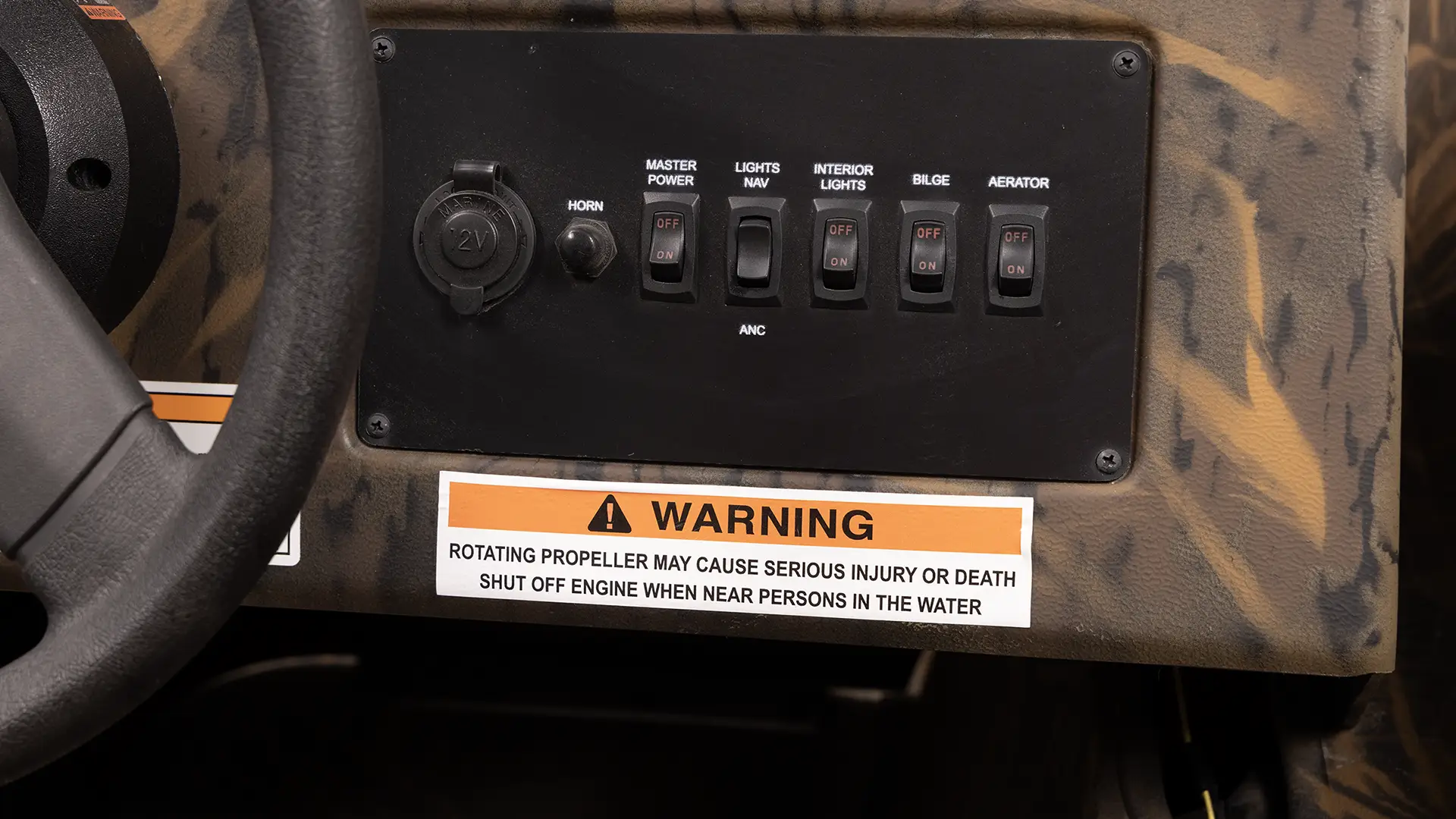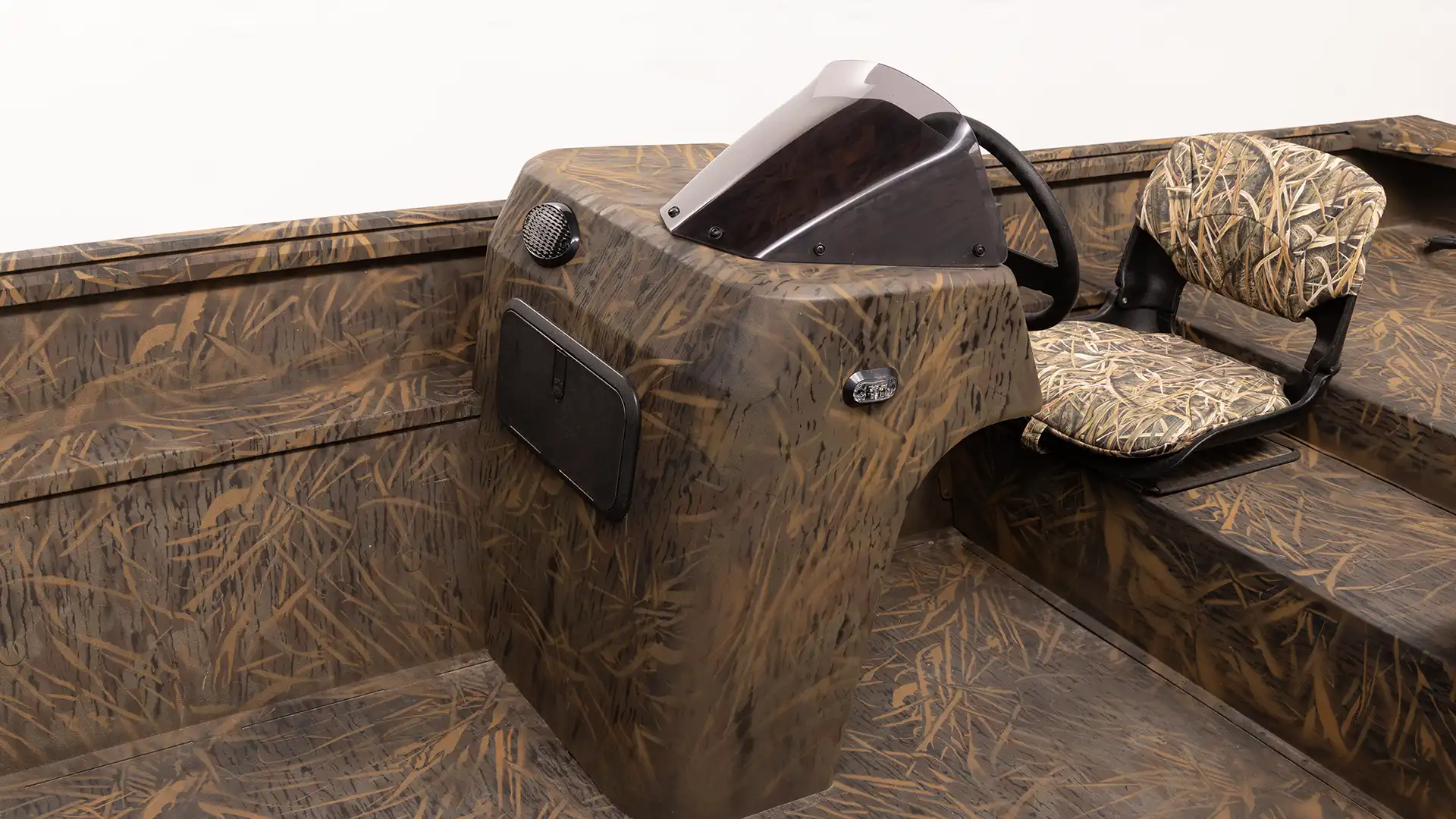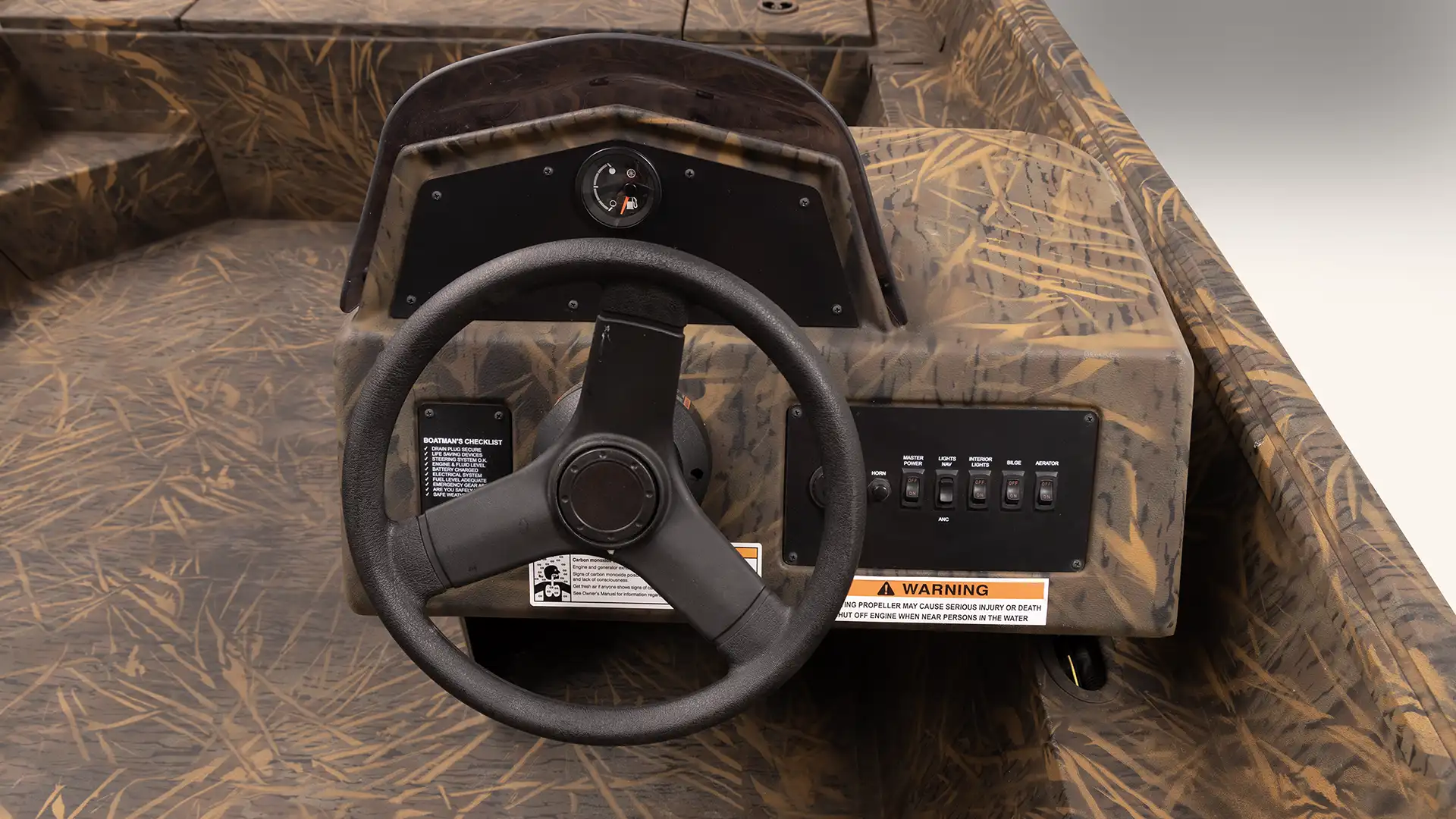 Under-seat storage, side rod holders, bow storage and livewell with a side console gives the angler just what they need.