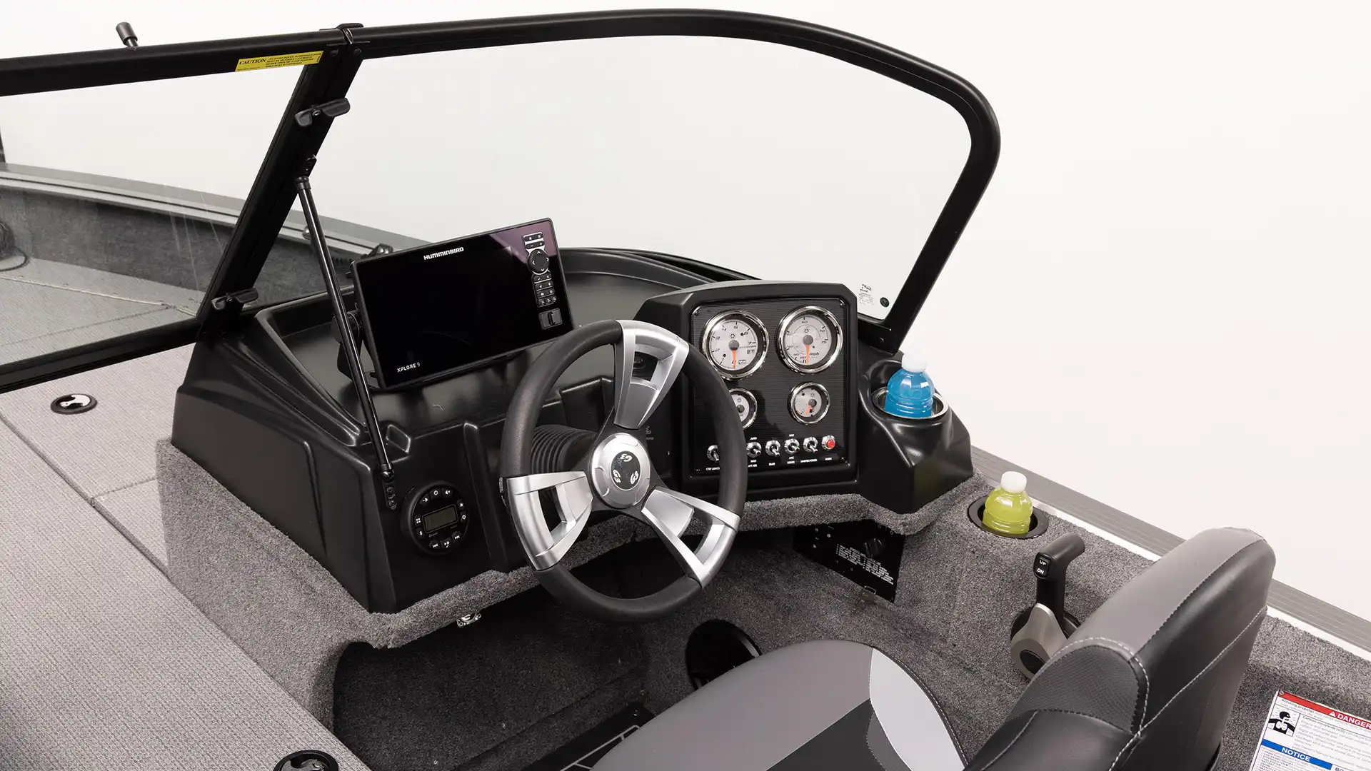 Built with a reinforced hull, the Angler V delivers the strength and stability to take you anywhere. The redesigned console puts all controls within easy reach, giving the captain command of the vessel.
